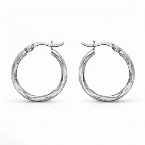 Boucles d'Oreilles Créoles Torsadées en Or Blanc 9 Carats
