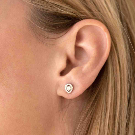L'entourage des boucles d'oreilles est pavé de diamants Le système de fermeture est un système poussette belge.
