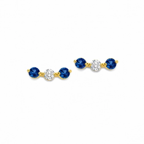 Boucles d'oreilles Ischia Basics, saphir bleu et diamant sur or jaune 750/1000 Hauteur : 11.9 mm Largeur : 3.4 mm Poids d' or : 1.9 gr 2 diamants taille brillant 0.18 ct 4 Saphir bleu 0.57 ct