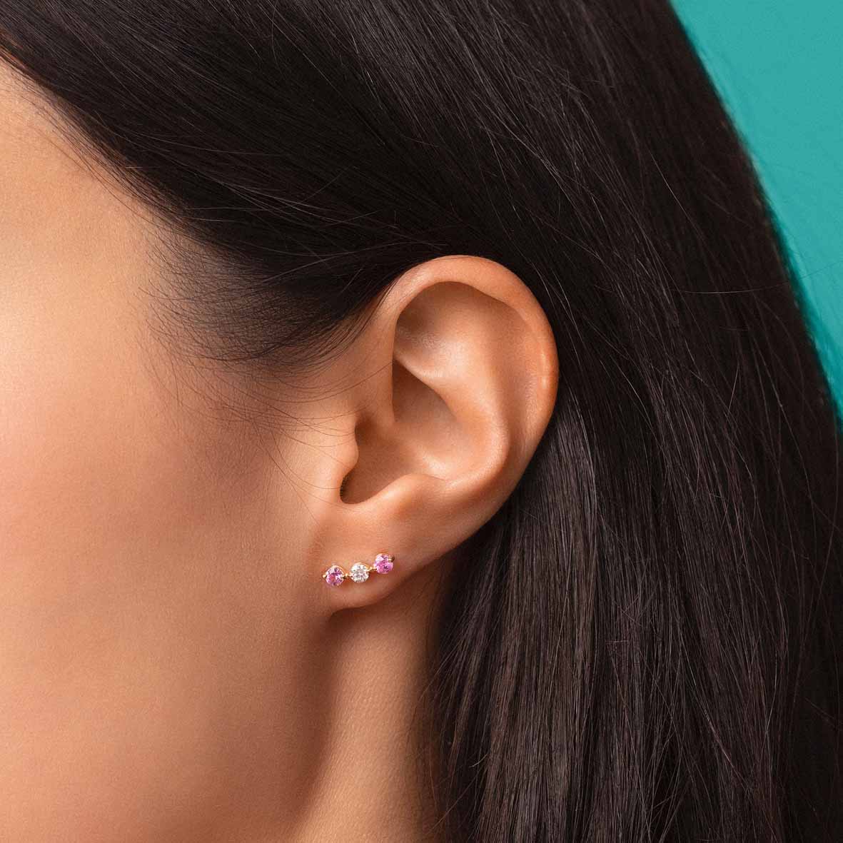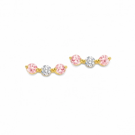 Boucles d'oreilles Ischia Basics, saphir rose et diamant sur or jaune 750/1000 Hauteur : 11.9 mm Largeur : 3.4 mm Poids d' or : 1.9 gr 2 diamant taille brillant 0.18 ct 4 Saphir rose 0.54 ct