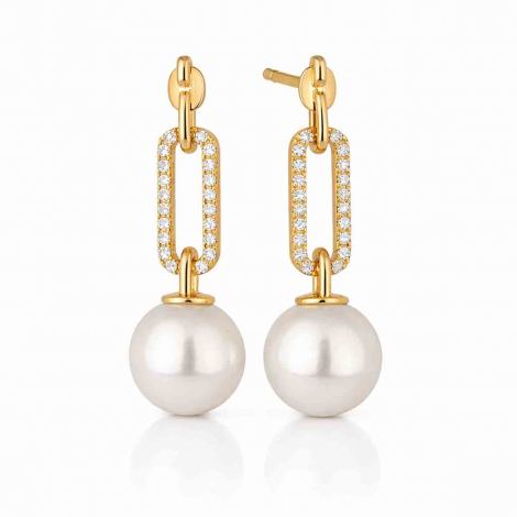 L'ornementation de 44 diamants blancs de couleur G et pureté VS crée une véritable auréole lumineuse autour de chaque perle. Avec un total de 0,17 carat de diamants répartis harmonieusement, ces boucles d'oreilles acquièrent une raffinement discret tout en captant la lumière à chaque mouvement.