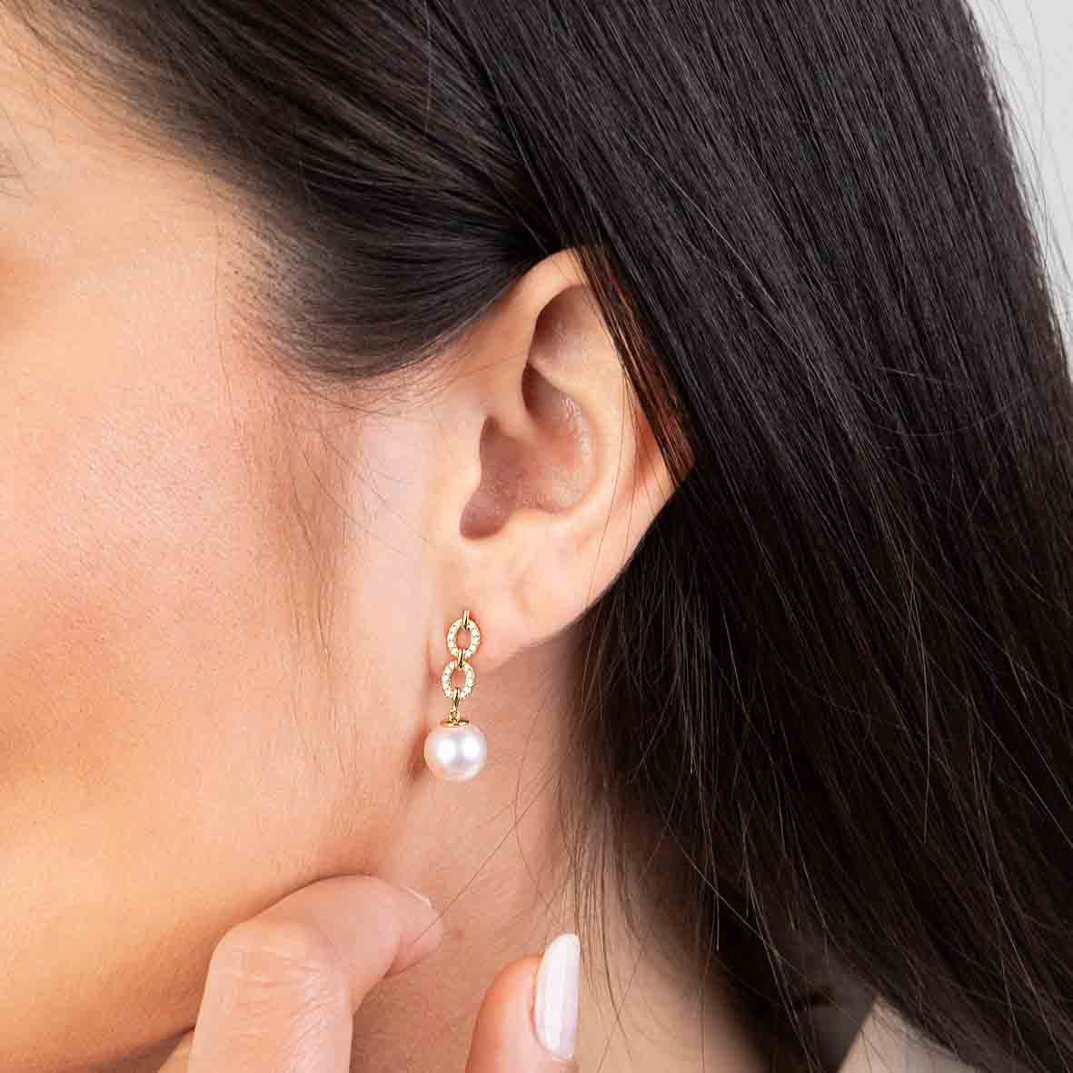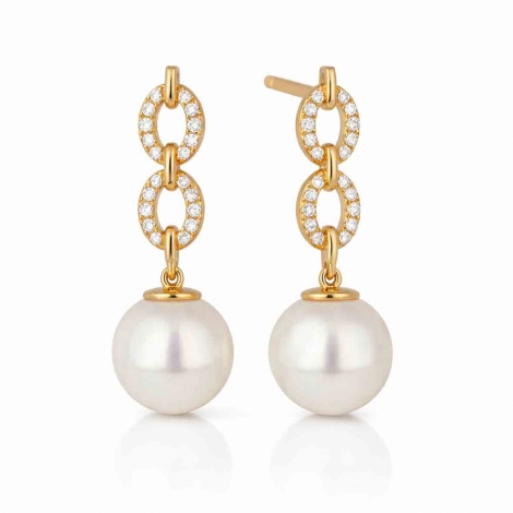 Le design raffiné associe la douceur des perles à l'éclat subtil de 40 diamants blancs de couleur G et pureté VS, totalisant 0,12 carats de brillance discrète. Ces gemmes sertissent les chaînettes délicates reliant les perles au fermoir poussette, ajoutant une dimension scintillante sans surcharger l'ensemble. D'une hauteur de 22 mm, ces boucles d'oreilles trouvent le juste équilibre entre présence et discrétion, parfaites pour valoriser le visage au quotidien comme en soirée. Le poids délicat de 1,8 grammes assure un confort optimal même pour un port prolongé.