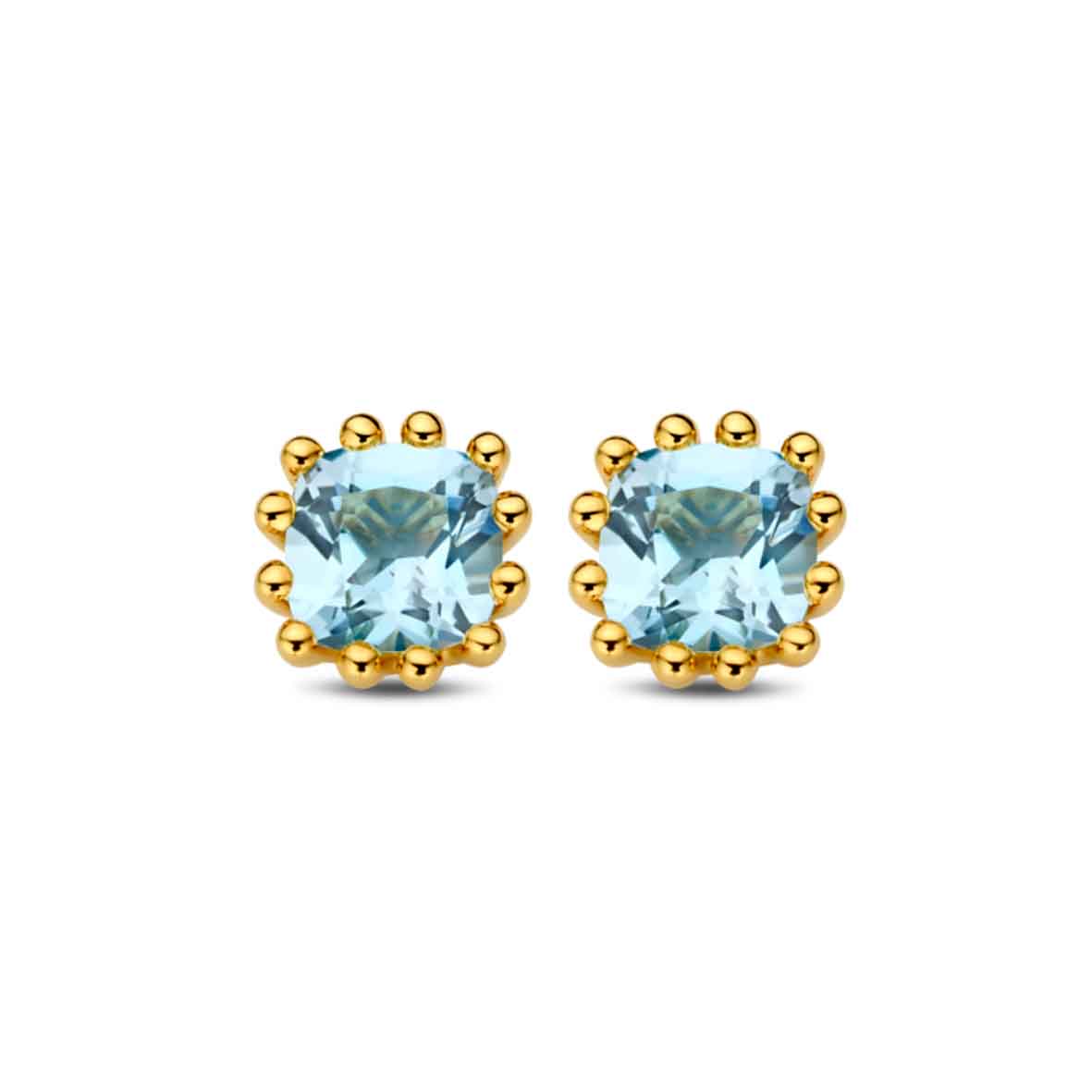 Confectionnées en or jaune 18 ct (750/1000), elles allient la chaleur du métal précieux à la fraîcheur éclatante de la topaze bleue, créant un contraste harmonieux et raffiné.