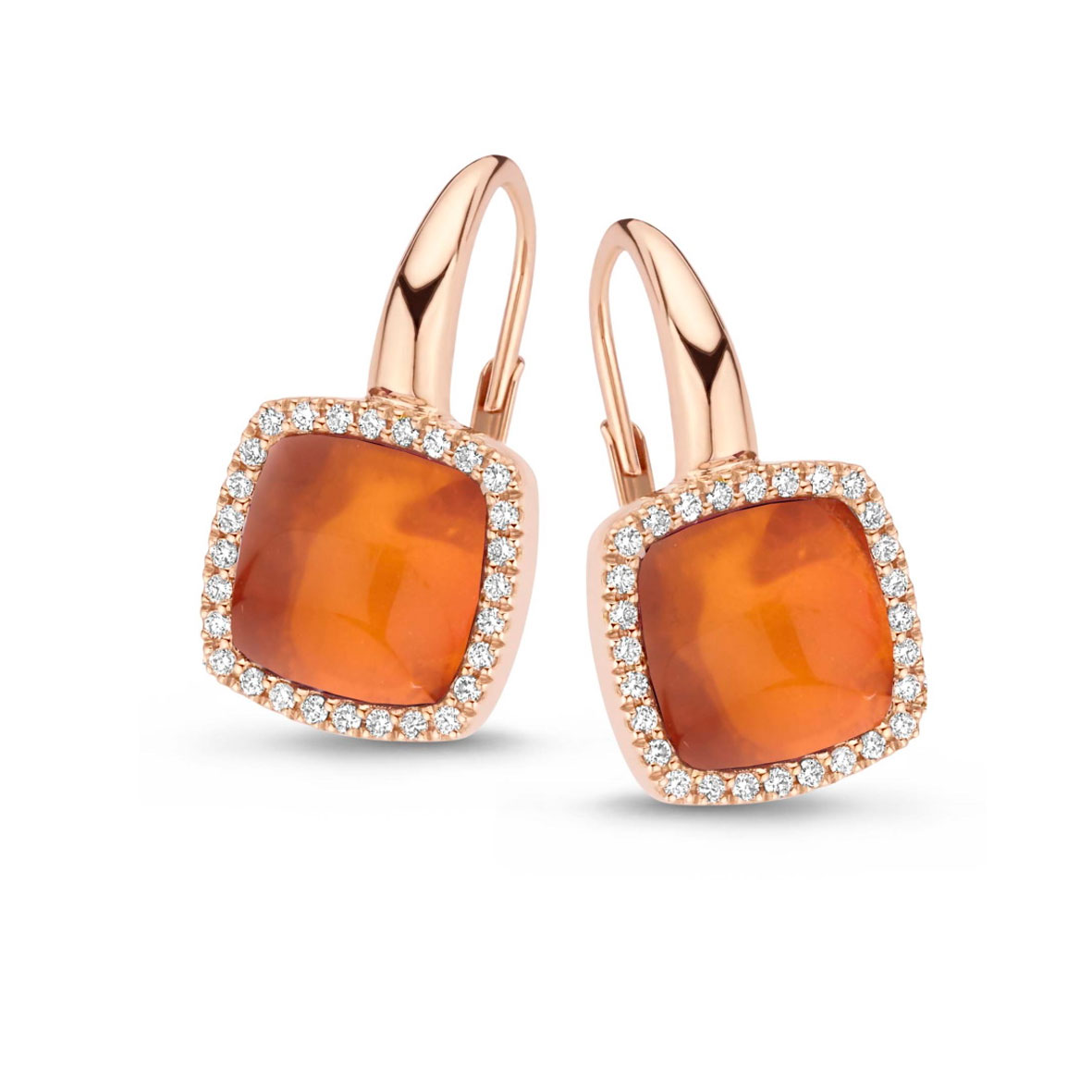 Boucles d'oreilles quartz sur agate orange et diamants One More - 062374H1
