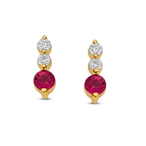Boucles d’oreilles en Or Jaune 18 Carats avec Rubis et Diamants