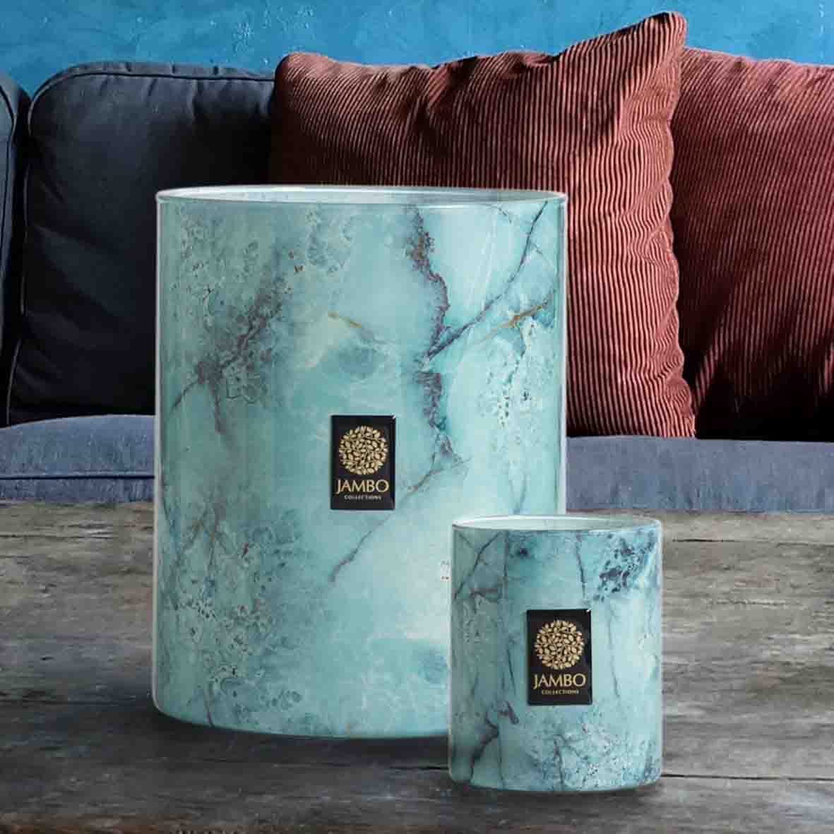 Avec son esthétique évocatrice, sublimée par un motif marbré d'un bleu-vert apaisant évoquant les eaux cristallines et la présence minérale, la Bougie Yejele L s'impose par sa présence élégante. Ses dimensions généreuses de 25 cm de hauteur et 20 cm de diamètre, associées à un poids impressionnant de 7 kg, témoignent de sa qualité exceptionnelle et de sa capacité à transformer de vastes espaces en havres de sérénité.