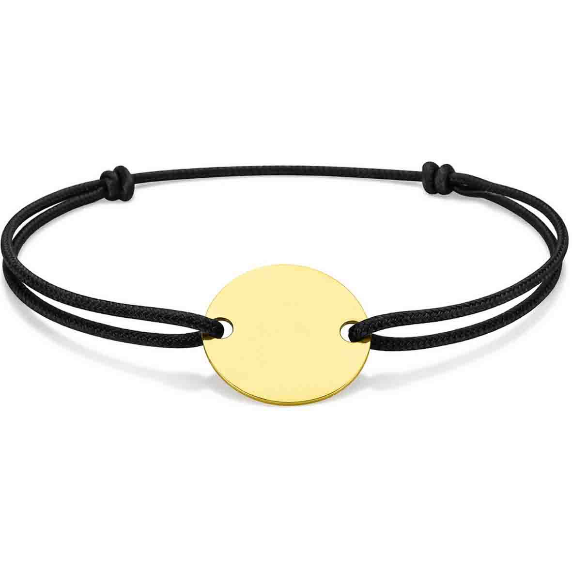 L’Élégance Décontractée du Bracelet Cordon Noir et Jeton en Or Jaune Subtil Diamant
