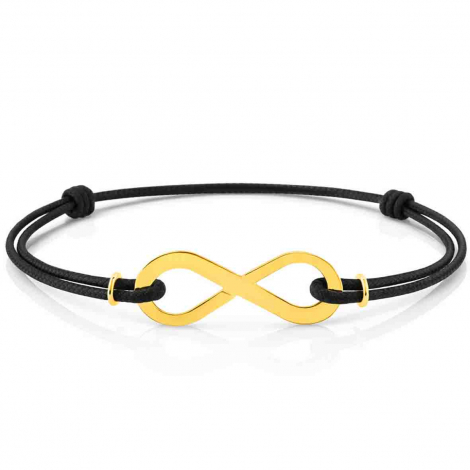 Le cœur de ce bracelet réside dans son emblématique signe de l'infini, minutieusement fabriqué en or jaune. Vous avez le choix entre deux degrés de pureté pour ce métal précieux : un or 9 carats (375/1000) pour une brillance éclatante à un prix accessible, ou un or 18 carats (750/1000) pour une intensité de couleur et une valeur accrues. Pesant 0,25 gramme et présentant une longueur de 20 mm pour son motif, cette délicate représentation du symbole est superbement mise en valeur par un cordon noir résistant et élégant.