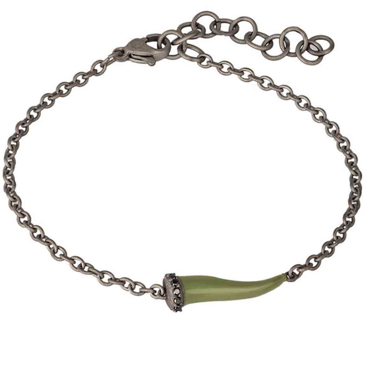 Bracelet Charms avec Corne en Titane Émaillé Vert Militaire, 5 Diamants Noirs et Chaîne – Mano J