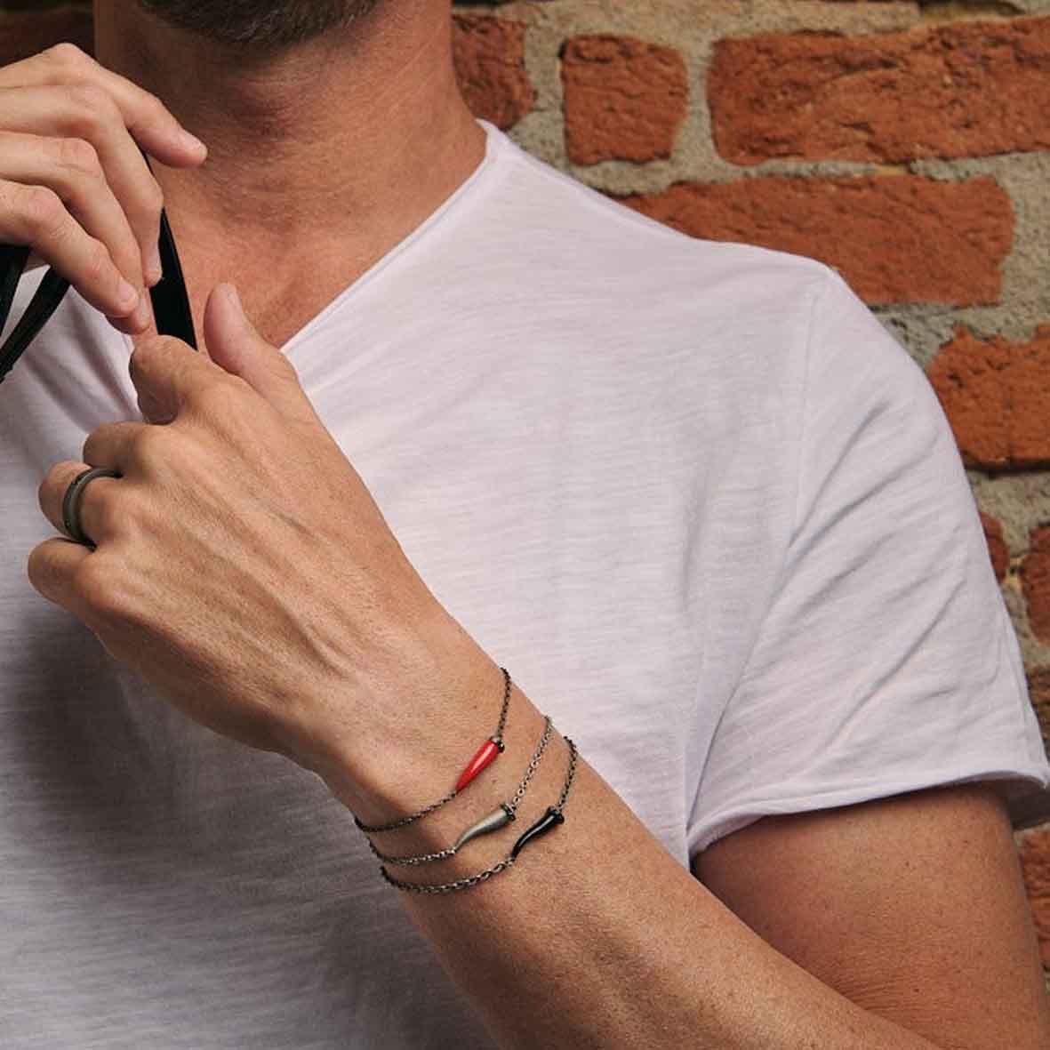 Ce bracelet unisexe signé Mano J, issu de la collection Lucky Horn, associe l’élégance italienne à un esprit résolument contemporain.