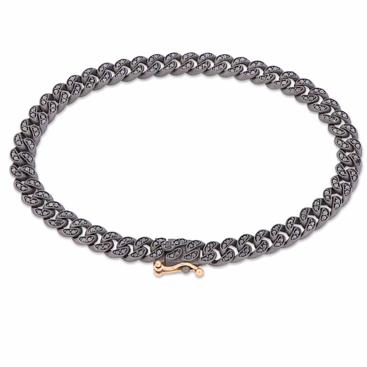 Bracelet Homme Gourmette en Titane, Diamants Noirs et Or Rose 18 Carats – MANO J