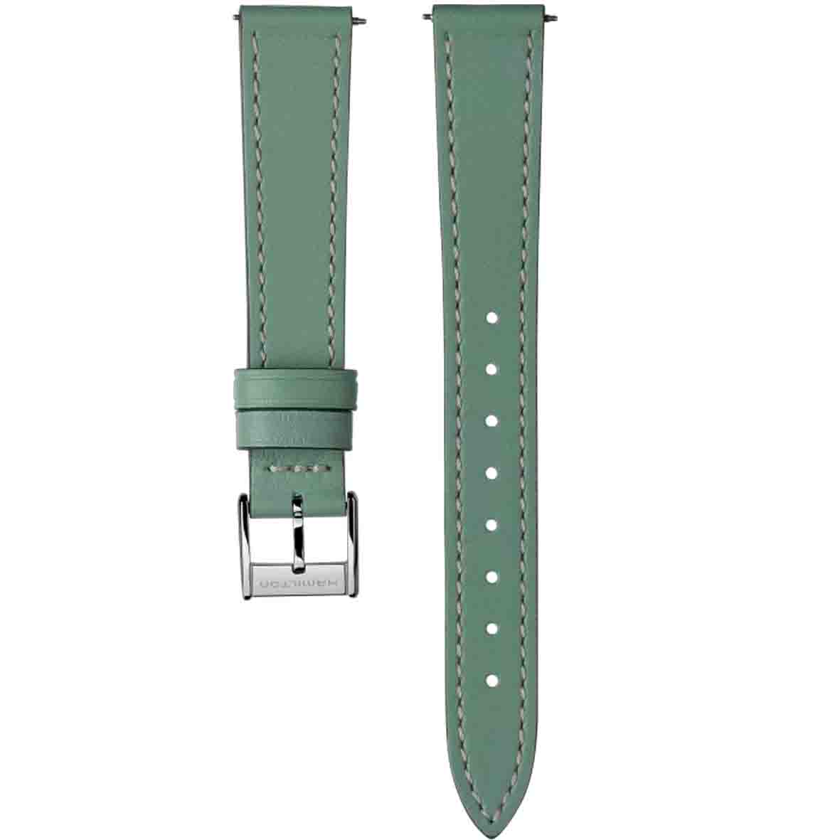 Hamilton s'impose comme une référence en matière de bracelets pour montre, grâce à son engagement indefectible en faveur de la qualité et de l'excellence. Chaque bracelet montre Hamilton est confectionné avec des matières premières de haute qualité, sélectionnées avec soin pour assurer durabilité et confort. La piqûre ton sur ton apporte une finition raffinée et harmonieuse à ce bracelet en cuir vert, renforçant son caractère sophistiqué.