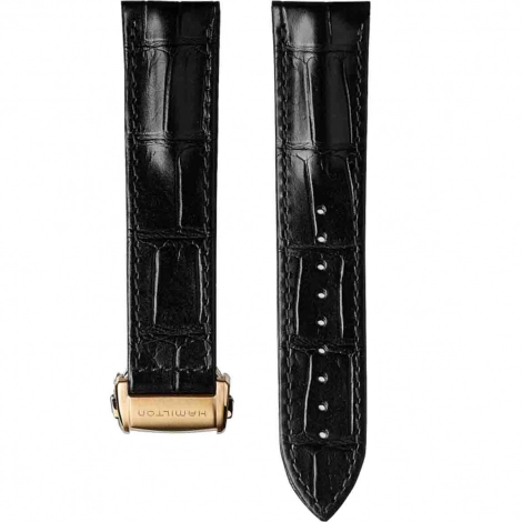 Sophistiqués, les bracelets en cuir Hamilton confèrent à votre montre un style intemporel et classique, adapté à toutes les occasions. Conçu pour la collection Jazzmaster, ce bracelet en cuir noir est doté d’une boucle déployante en acier inoxydable revêtu de PVD or.