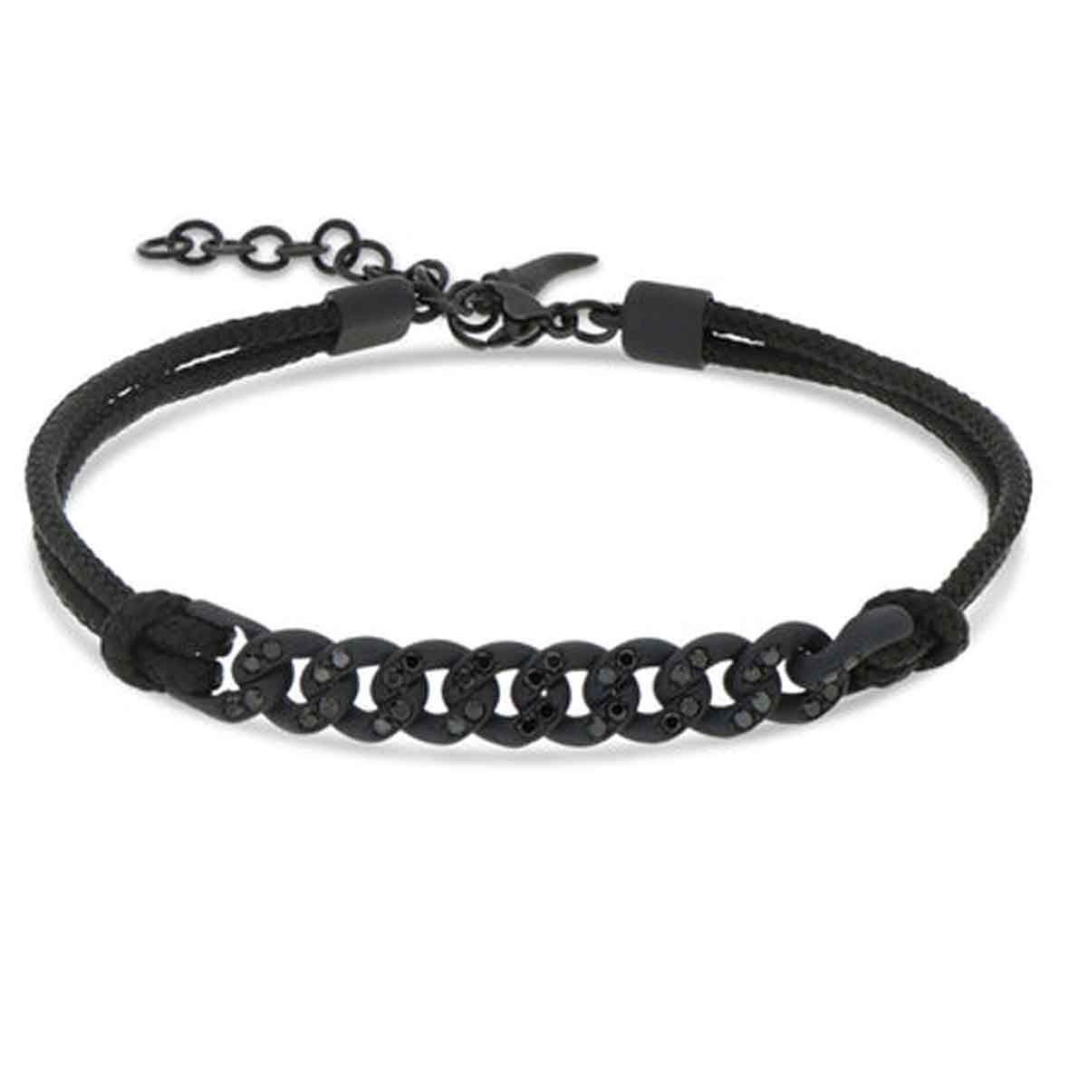 Bracelet Homme Nautique en Titane Noir avec Chaîne Gourmette, Diamants Noirs et Cordon Noir – MANO J