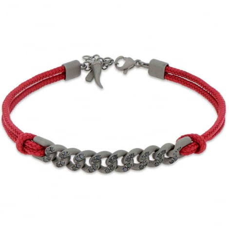 Bracelet Homme Nautique en Titane avec Chaîne Gourmette, Diamants Noirs et Cordon Rouge – MANO J