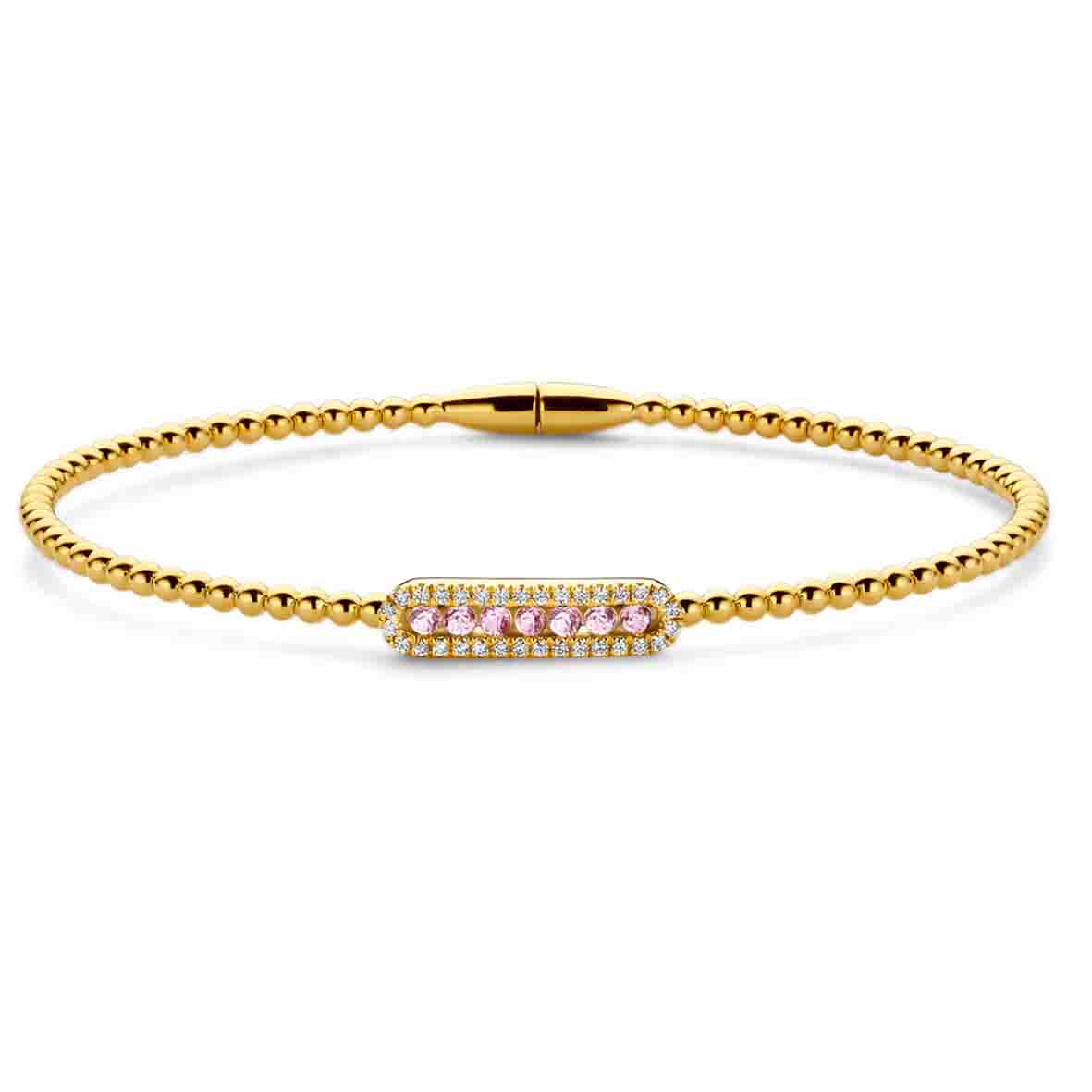 Bracelet jonc saphir rose et diamants en or jaune 18 carats