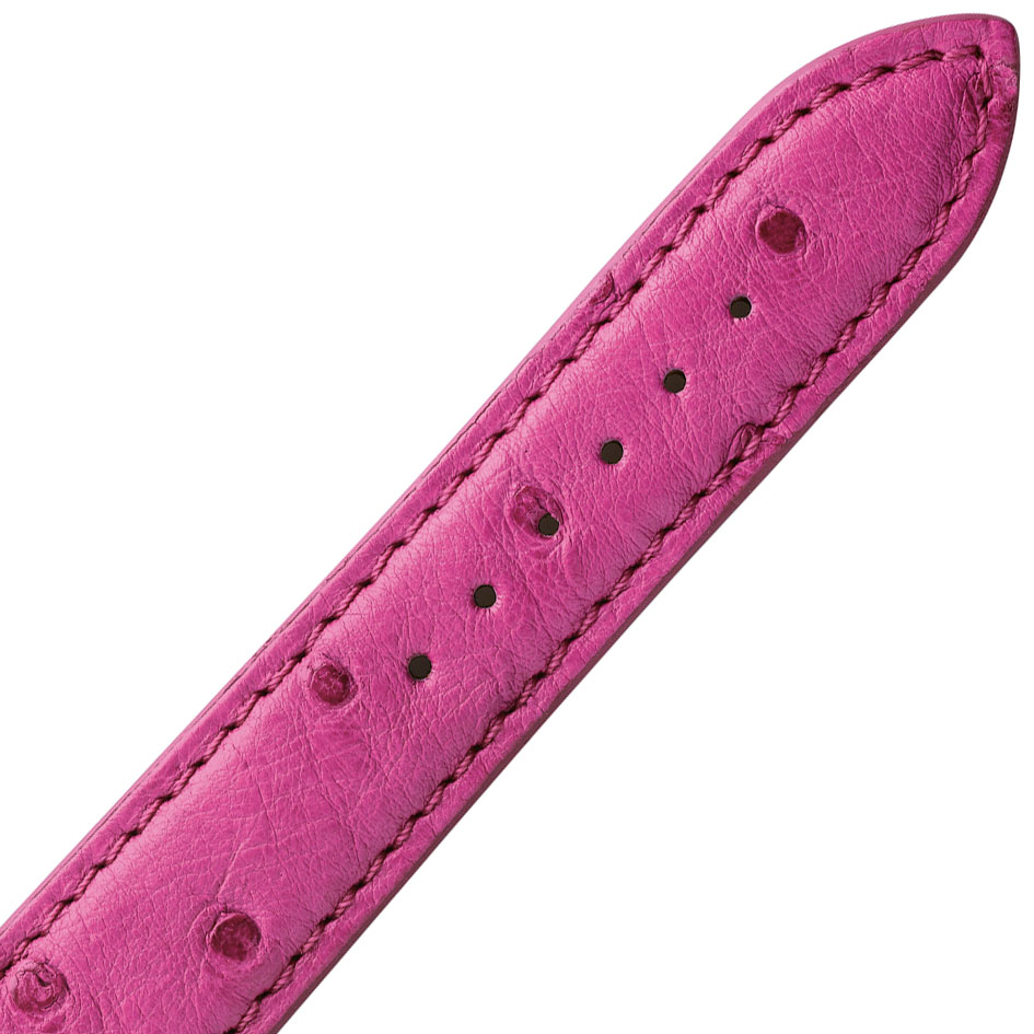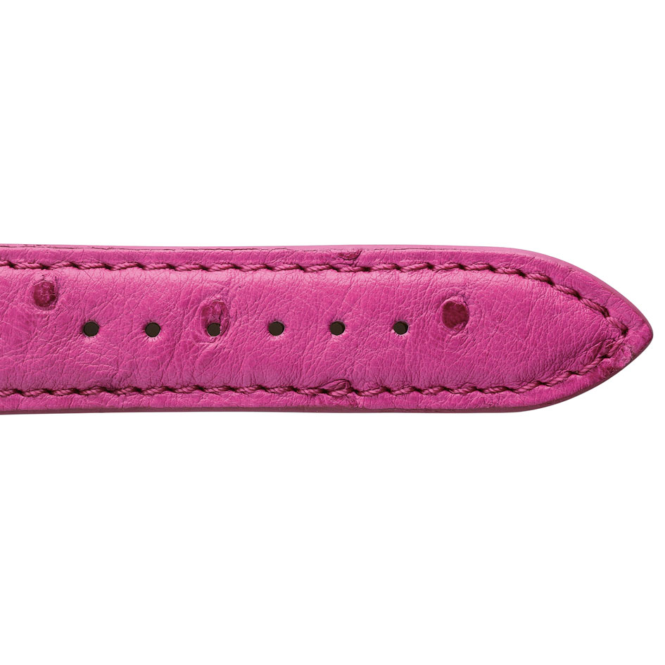 Le bracelet de montre en Autruche Fuchsia a une doublure en cuir.