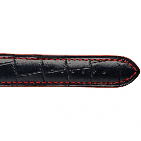 Le bracelet de montre en veau façon croco noir fil rouge a une doublure en cuir.