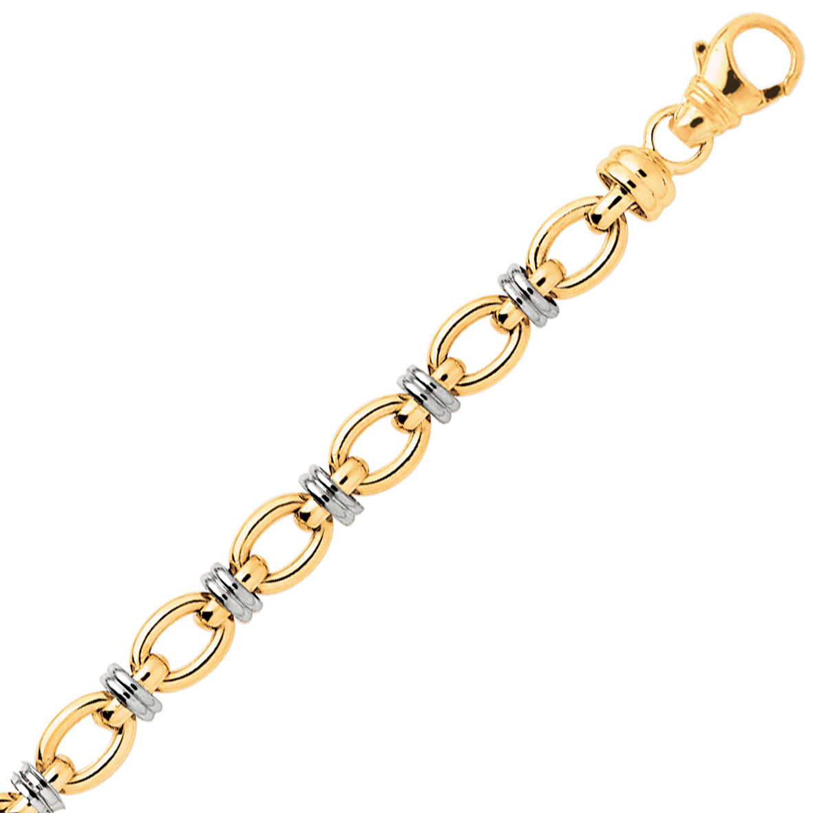 La chaîne est bicolore, elle est composée de maillons en or jaune alterné avec des maillons en or blanc.