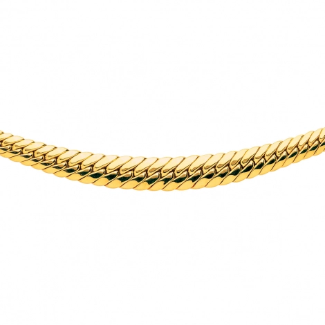 Contrairement à la maille forçat qui présente des mailles rondes et serrées, la maille anglaise propose une apparence plus plate et légèrement plus large, créant ainsi un rendu plus fluide et élégant.