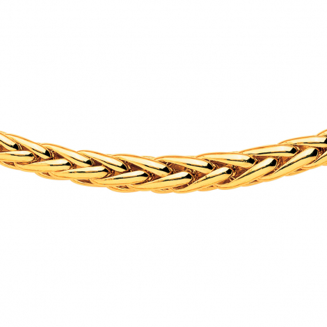 Confectionnée en or jaune 18 carats (750/1000), cette chaîne maille palmier présente une largeur généreuse de 9mm au centre, offrant une présence délicate mais affirmée à votre cou. Le travail méticuleux de nos fournisseurs garantit une qualité de finition remarquable qui séduira les amateurs de bijouterie authentique. Le fermoir cliquet en or jaune assure fermeté et sécurité au quotidien.