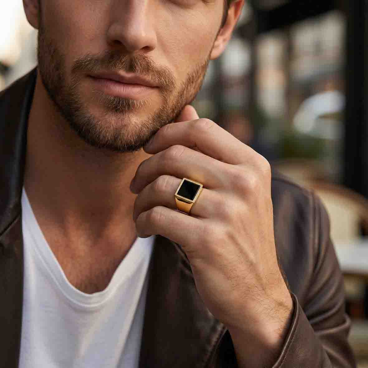 L'éclat intemporel de la Chevalière Onyx en Or Jaune 18 Carats