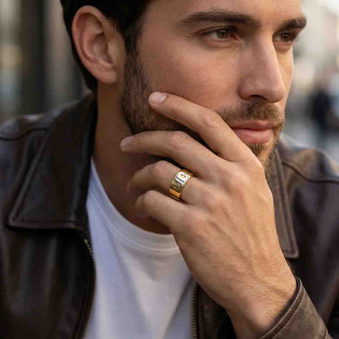 Le design de cette chevalière moderne se distingue par son plateau discret, dont les lignes fluides se confondent avec l'élégance du corps de l'anneau.
