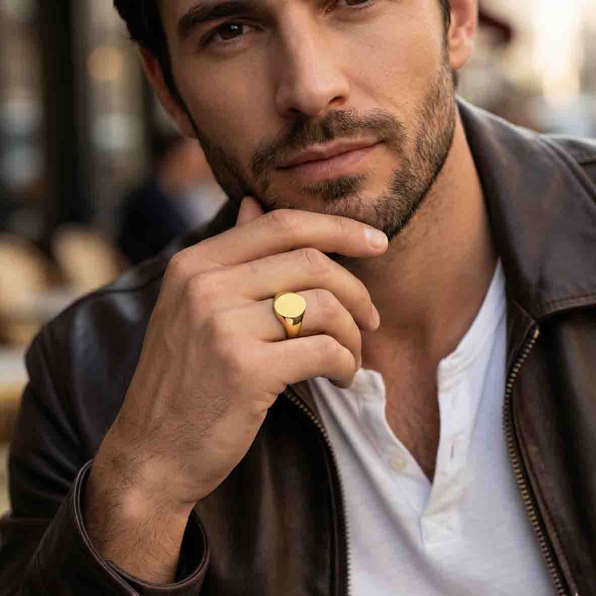 La chevalière est une bague emblématique, historiquement portée par les nobles et les chevaliers pour y graver leurs armoiries familiales ou leur sceau.