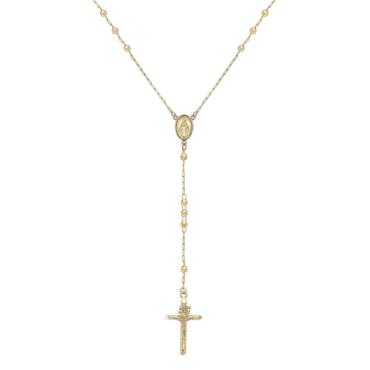 Chapelet long en or jaune 9 carats – Collier rosary diamanté 71 cm