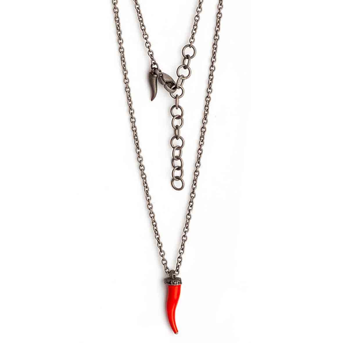 Collier Ligne Charms avec Pendentif Corne en Titane Émaillé Rouge, 5 Diamants Noirs et Chaîne – Mano J