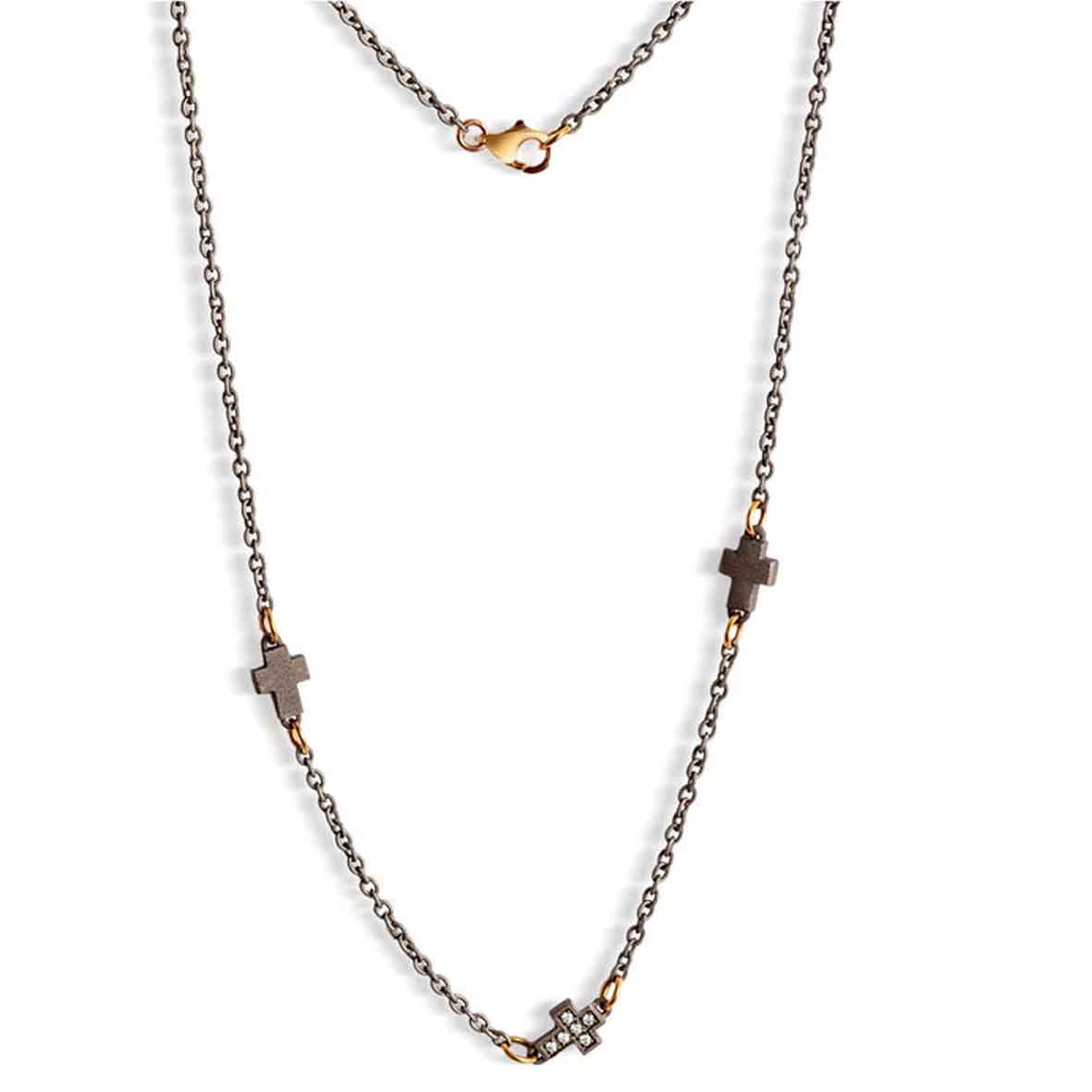 Collier Croix Mano J - diamants - Titane - MINGIRTW3CROK