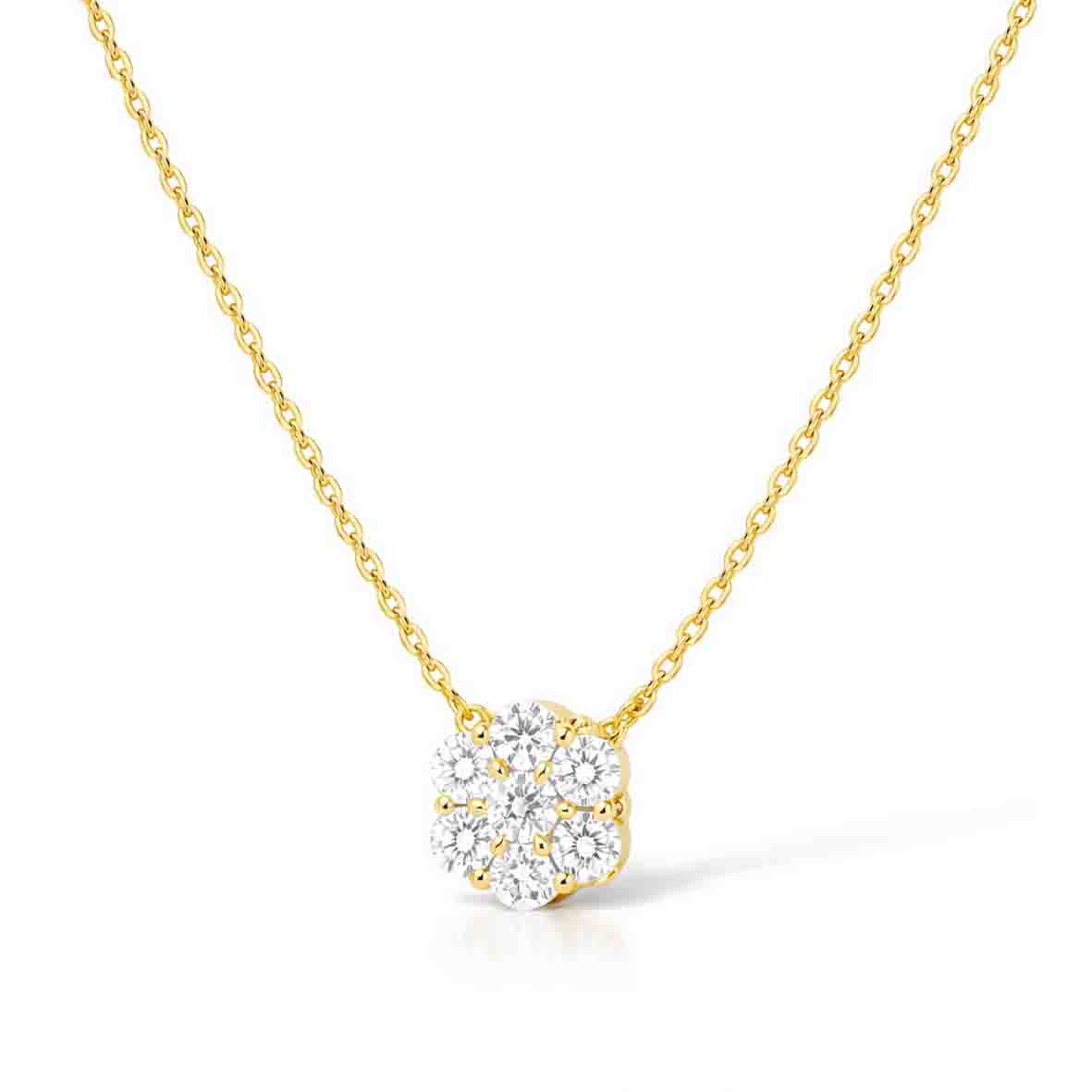Découvrez l'élégance intemporelle de ce collier diamant de synthèse, une pièce de joaillerie moderne qui allie authenticité et responsabilité environnementale. Confectionné en or jaune 375/1000 (9 carats), ce bijou féminin arbore un diamant de laboratoire de 0,53 carats, taillé en forme ronde et brillant. Le diamant blanc de qualité F-VS est serti avec finesse en griffe, une technique traditionnelle qui maximise la lumière et met en valeur la pierre avec élégance.