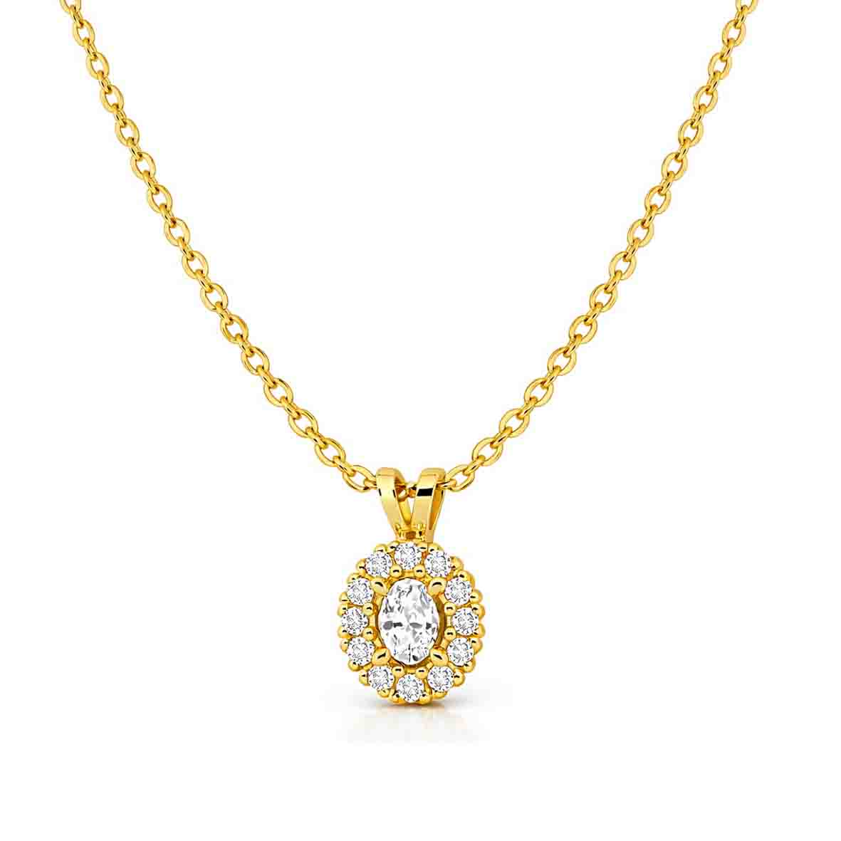 Découvrez l'élégance intemporelle de ce collier diamant de synthèse, une création raffinée alliant sophistication et responsabilité. Ce bijou de prestige met en avant un diamant de laboratoire de forme ovale pesant 0.11 carat, serti en griffe pour sublimer sa brillance naturelle. Entouré d'une couronne harmonieuse de diamants de synthèse totalisant 0.06 carat, ce collier diamant offre un scintillement captivant qui ne vous quittera pas des yeux.