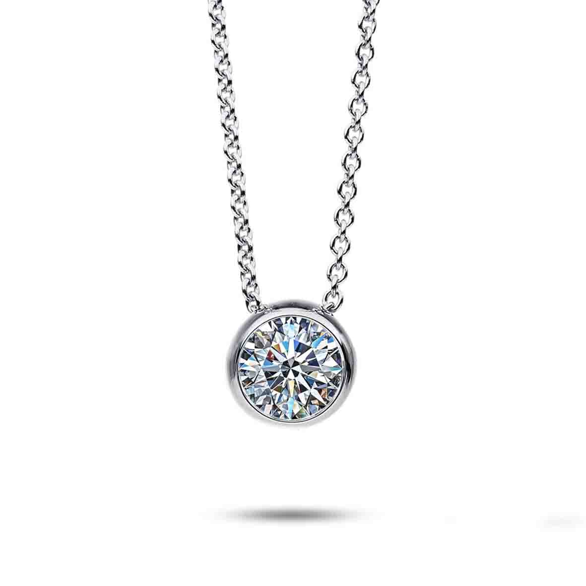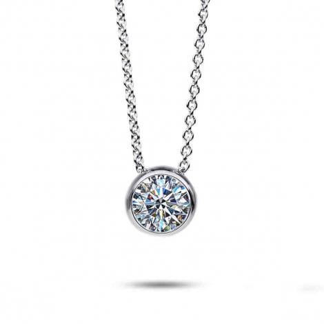 Ce collier solitaire en serti clos allie finesse, pureté et modernité.