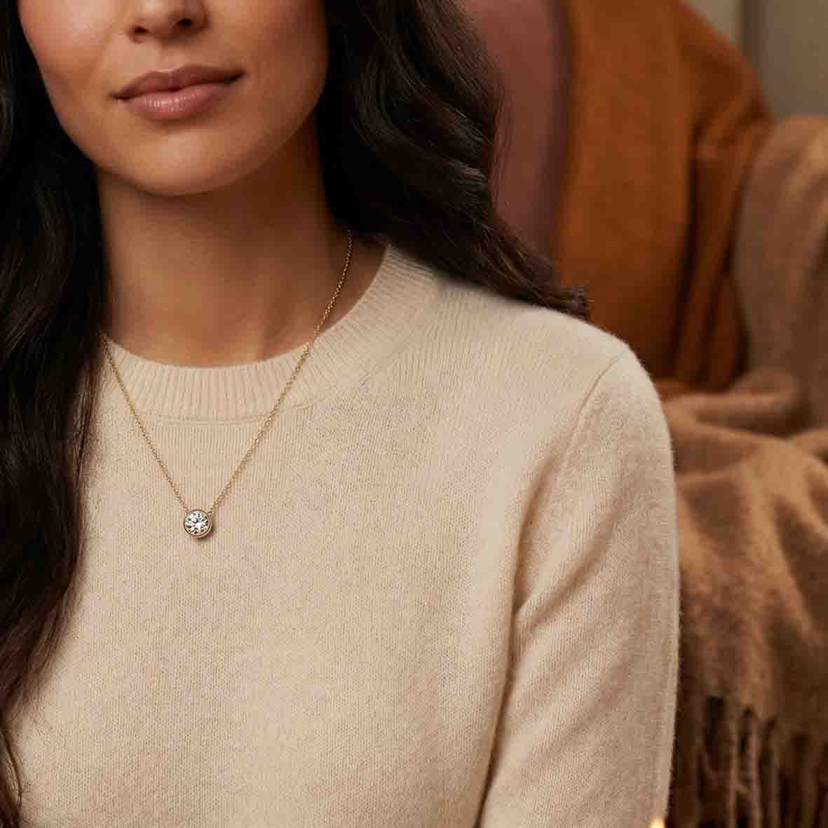 Ce collier solitaire en serti clos symbolise la pureté et l’élégance minimaliste.