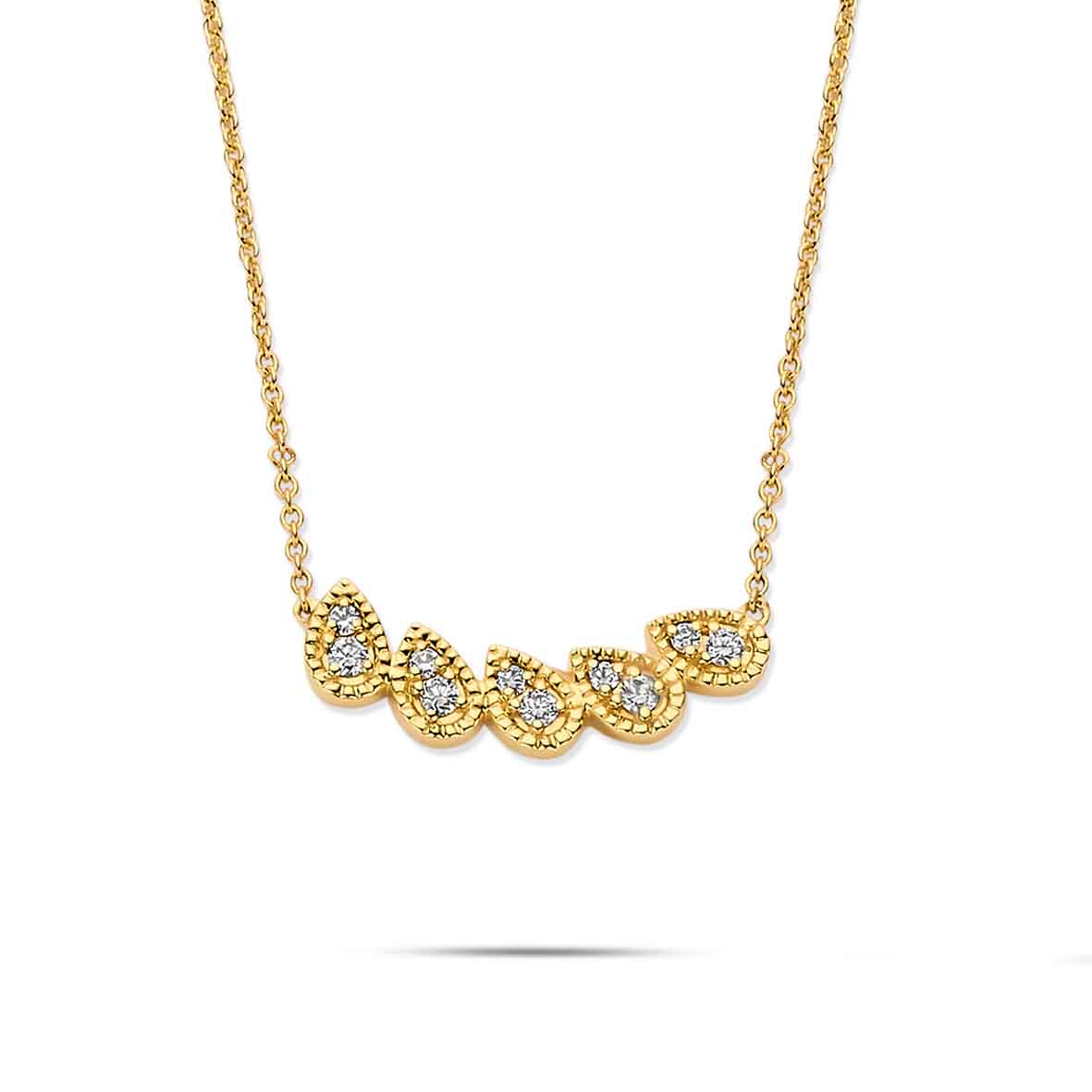 Collier 5 motifs poires serti de diamants en or jaune 18 carats