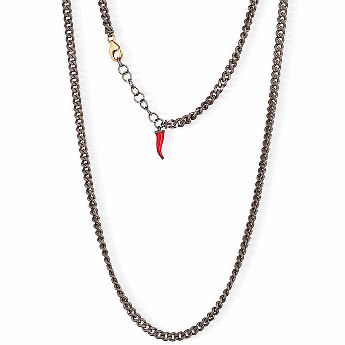 Collier Homme Chaîne Gourmette en Titane, Or Rose 9 Carats et Pendentif Charms Rouge – MANO J