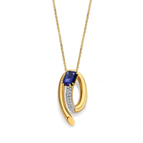 Collier Péridot et diamants en Or jaune et blanc 18 ct 28 Diamant(s) taille brillant 0.19 ct 1 Lolite 1.49 ct Taille 29.4 mm Largeur 15.2 mm Longueur 450 mm Peut également être porté plus court. Longueur minimale: 420 mm. Poids 7.2 gr