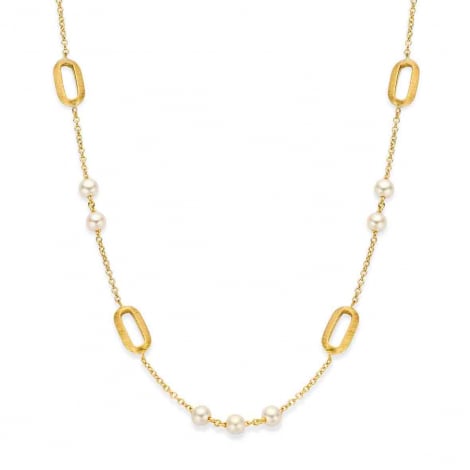 Collier Femme en Or Jaune 18 Carats avec Perles Blanches