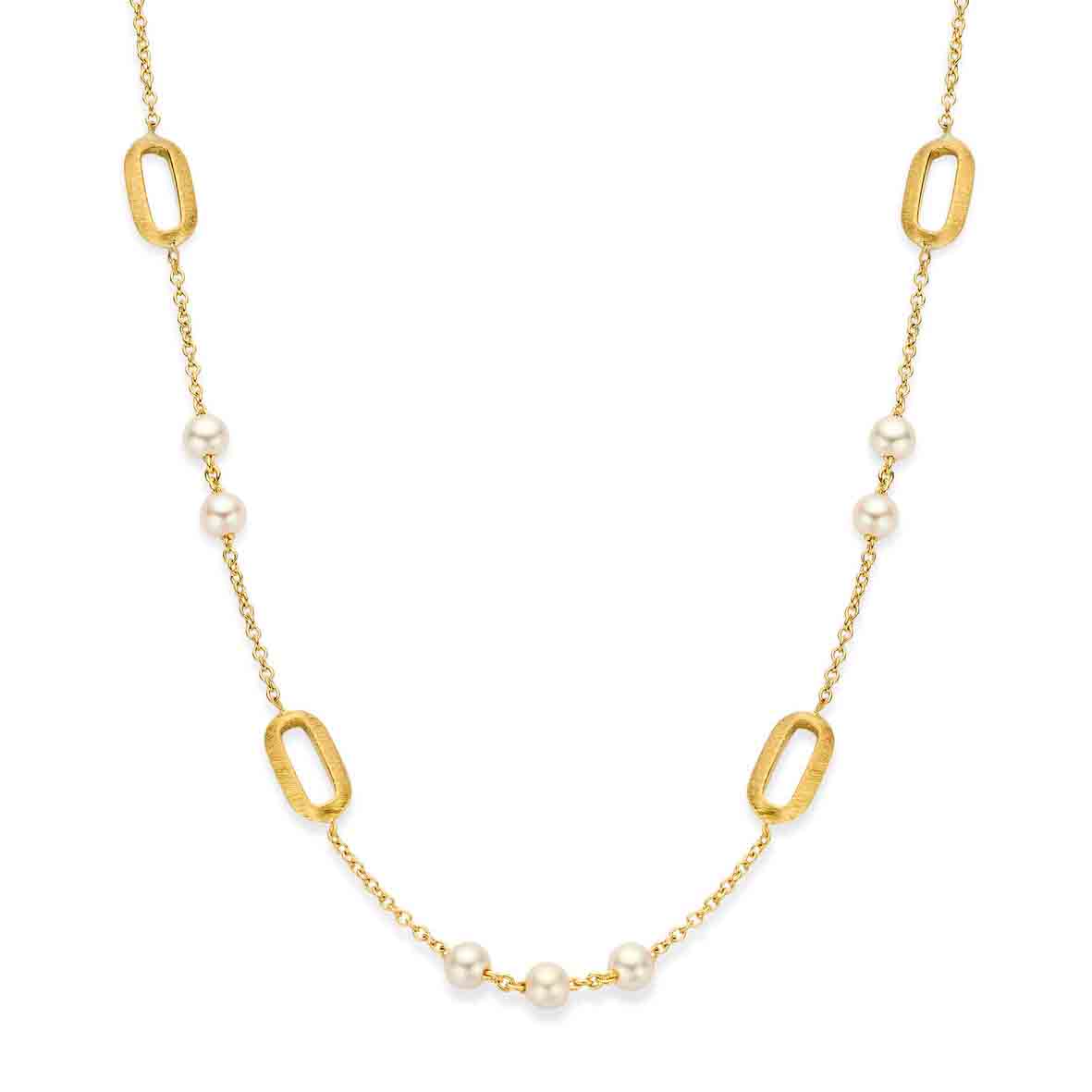 Composé d’une chaîne fine et solide en or jaune, ce collier met en valeur une série de perles blanches naturelles qui apportent éclat et raffinement.