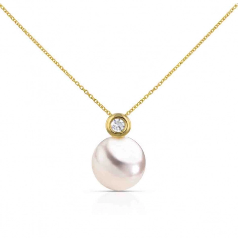 La perle Akoya de ce collier présente un diamètre de 8,5 à 9 mm, ce qui correspond à une taille de perle culture idéale pour un pendentif. Cette dimension offre une présence visuelle élégante sans être imposante, s'adaptant parfaitement à tous les types de morphologies.