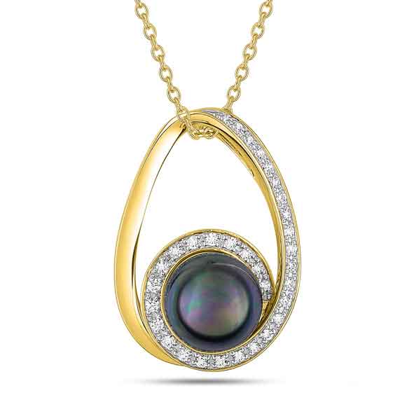 Collier perle de Tahiti montée sur une chaîne en or jaune de 18 carats. La perle de Tahiti a un diamètre de 9 - 9.5 mm. Le fermoir de la chaîne est un anneau ressort.
