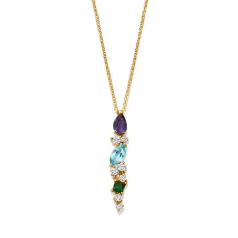 Collier Pierres Fines et diamants en or jaune 18 ct