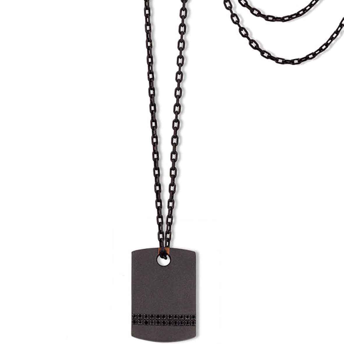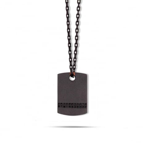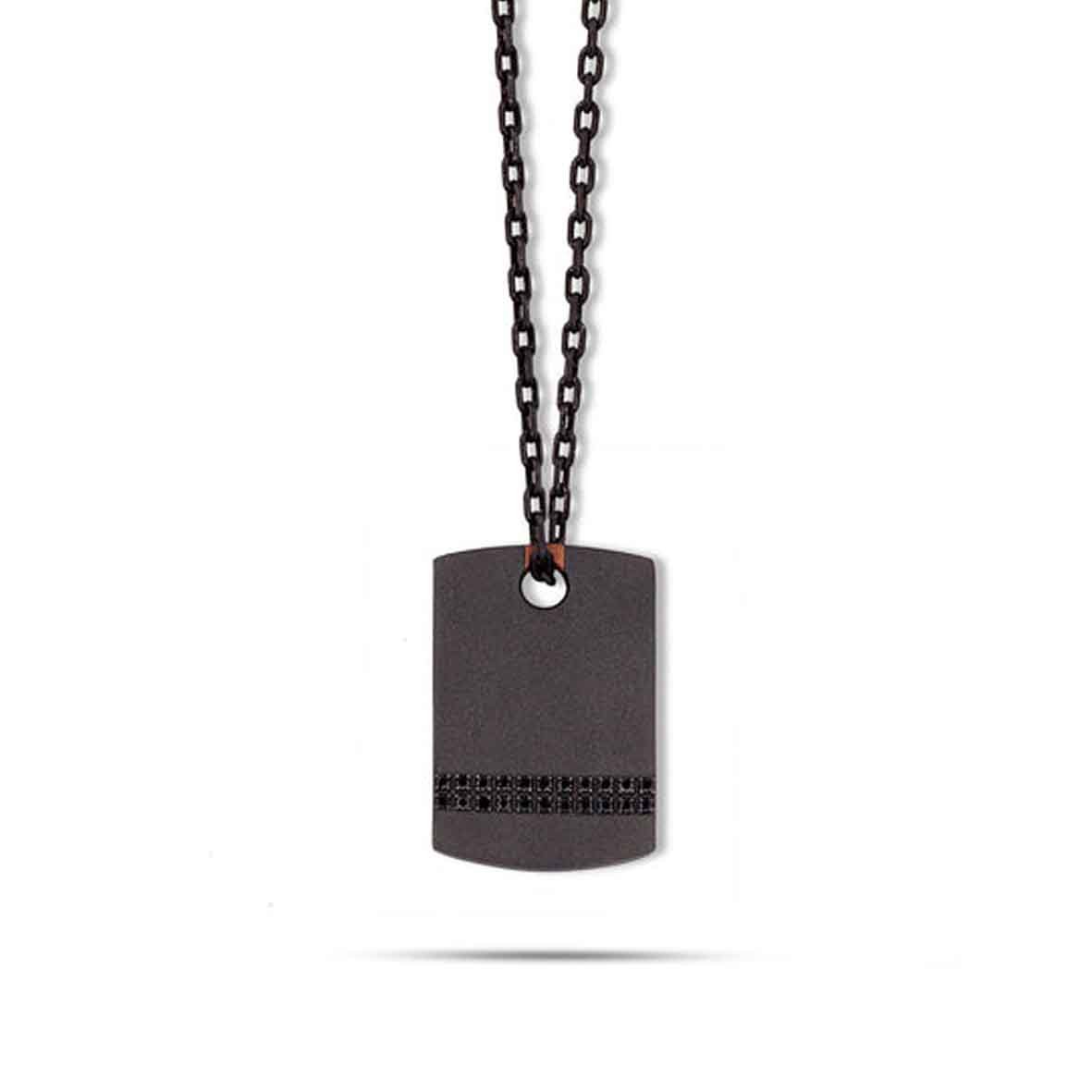 Collier Homme avec Plaque en Titane, Or Rose 18 Carats, Or Rose 9 Carats et 22 Diamants Noirs – Mano J