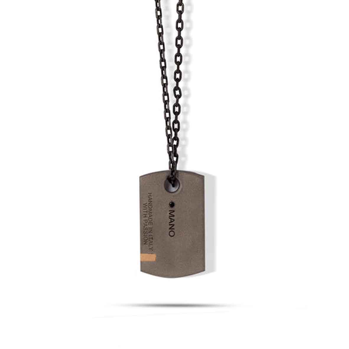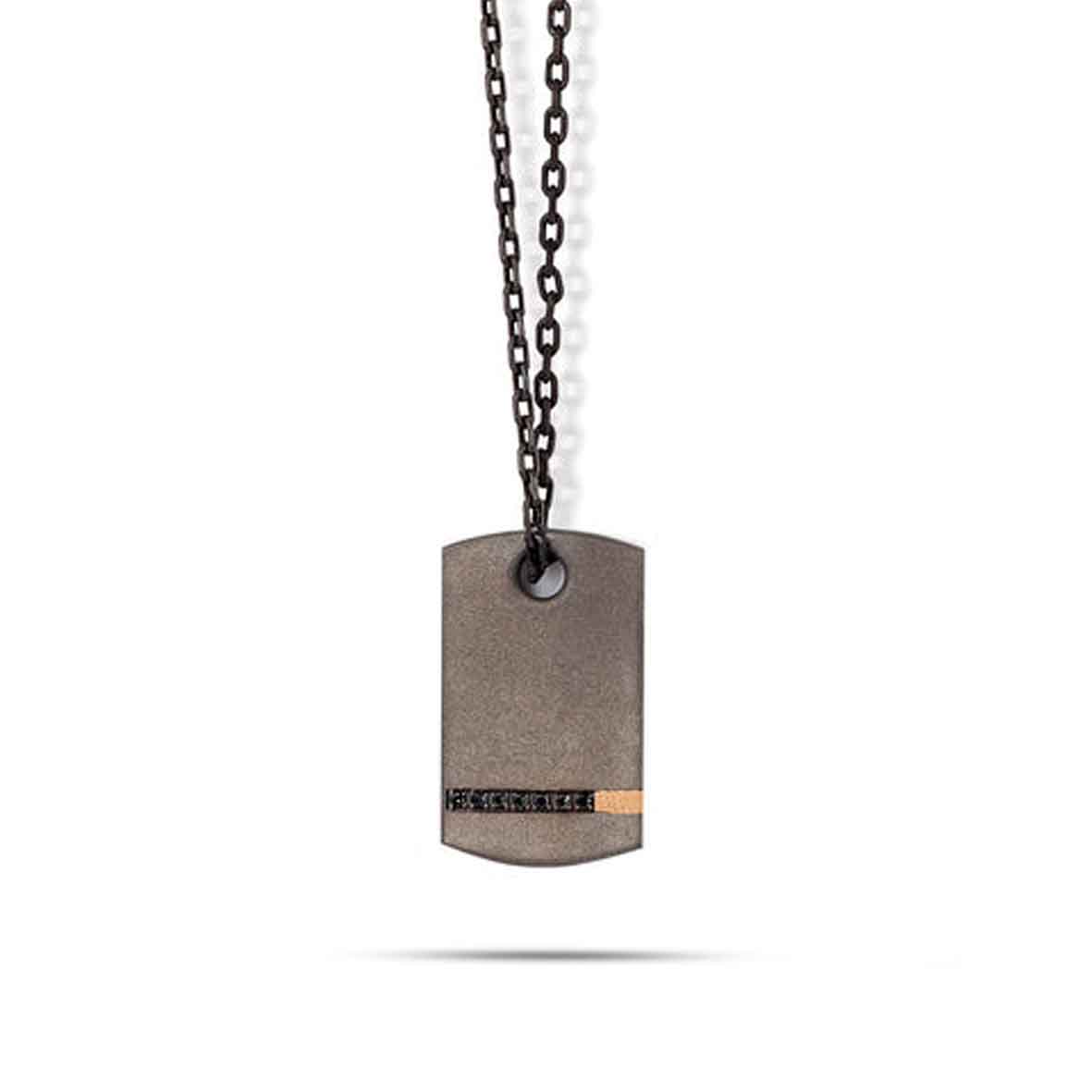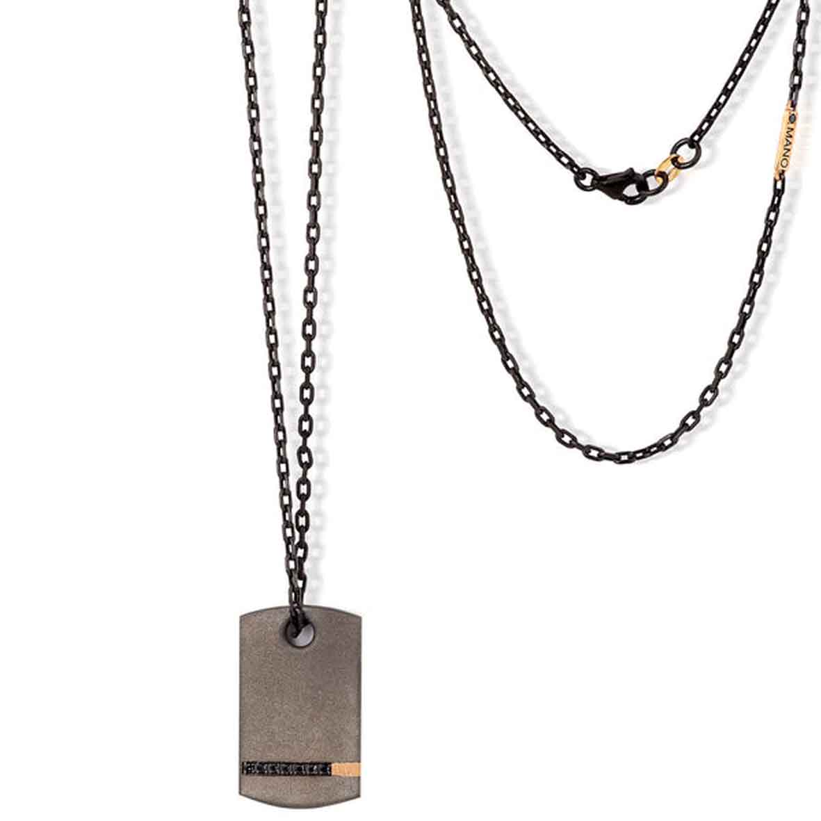 Collier Homme avec Plaque en Titane, Or Rose 18 Carats et Diamants Noirs – Mano J