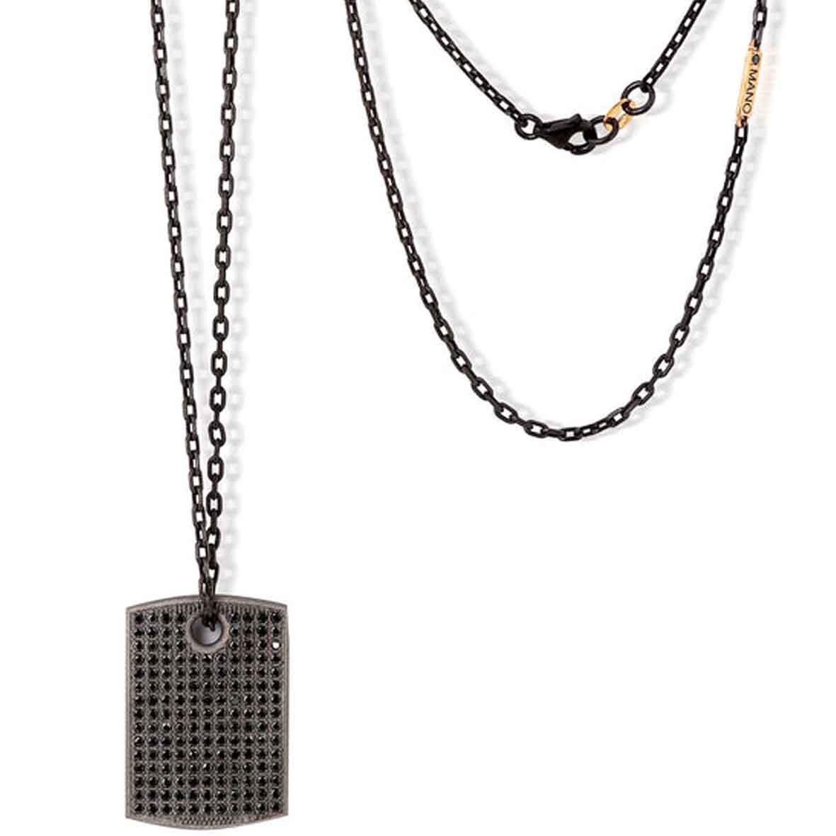 Ce collier pour homme signé Mano J est une pièce de joaillerie d’exception, où la puissance du titane rencontre la brillance hypnotique des diamants noirs.
