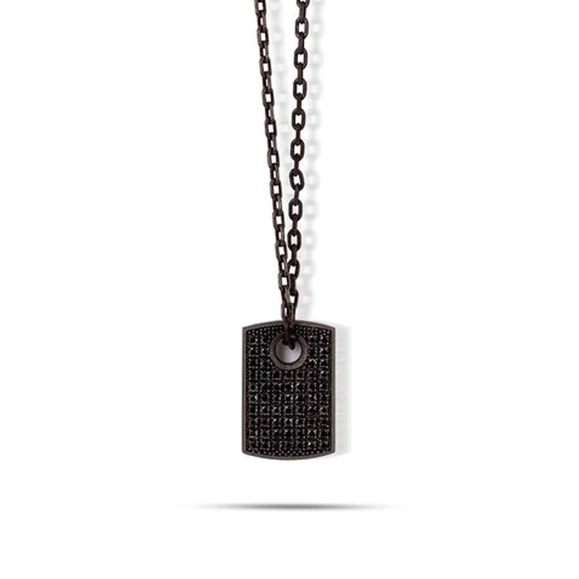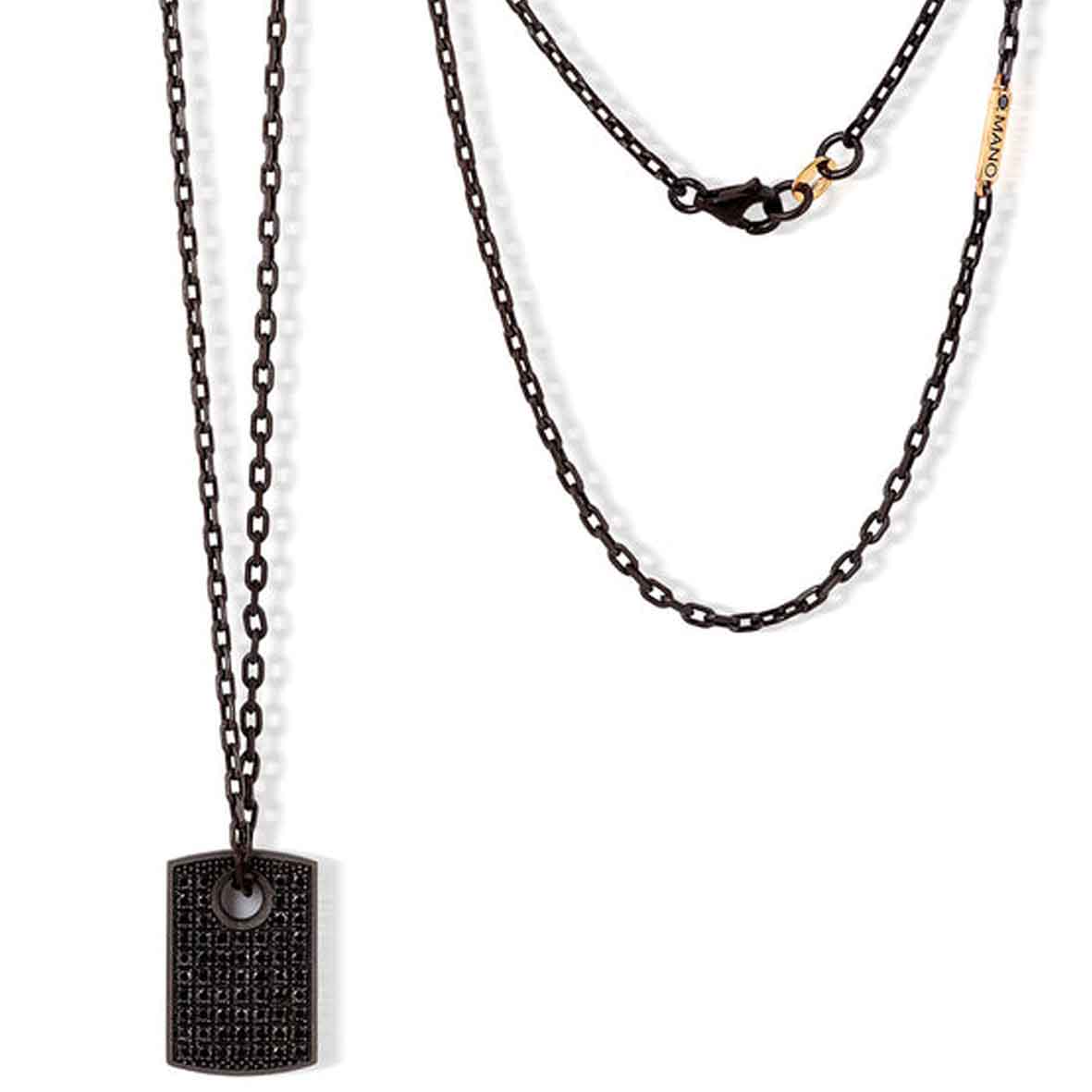 Collier Homme avec Petite Plaque en Titane, Diamants Noirs, Or Rose 18 Carats, Or Rose 9 Carats et Chaîne – Mano J