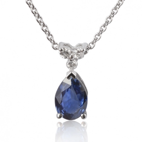 Le pendentif présente un saphir taillé en forme de poire, d’un poids de 0.90 carat.
