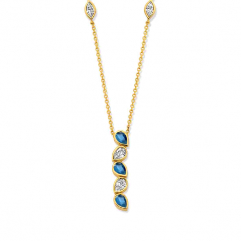 Ce somptueux collier en or jaune 18 ct (750/1000) met en lumière l’alliance parfaite entre la profondeur envoûtante des saphirs bleus et l’éclat intemporel des diamants naturels.