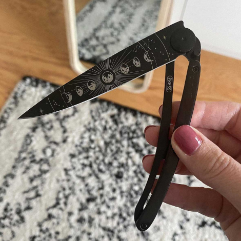 Ce qui différencie profondément Deejo des autres marques de couteaux, c’est certainement la possibilité de personnaliser chaque pièce grâce à des tatouages/gravures artistiques.
